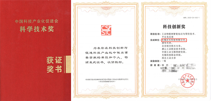 《工業(yè)物聯(lián)網(wǎng)智能標識與管控技術(shù)、平臺及應用》合作成果榮獲中國科技產(chǎn)業(yè)化促進(jìn)會(huì )頒發(fā)的第三屆科學(xué)技術(shù)獎-科技創(chuàng )新一等獎。